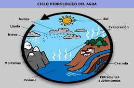 El calor del sol provoca la evaporación del agua y la transpiración o evapotranspiración de los seres vivos. El vapor de agua asciende y se enfría en capas altas de la atmósfera, se condensa y forma nubes (emulsiones de agua y hielo). Las nubes se trasladan y dan origen a precipitaciones de lluvia, granizo o nieve.